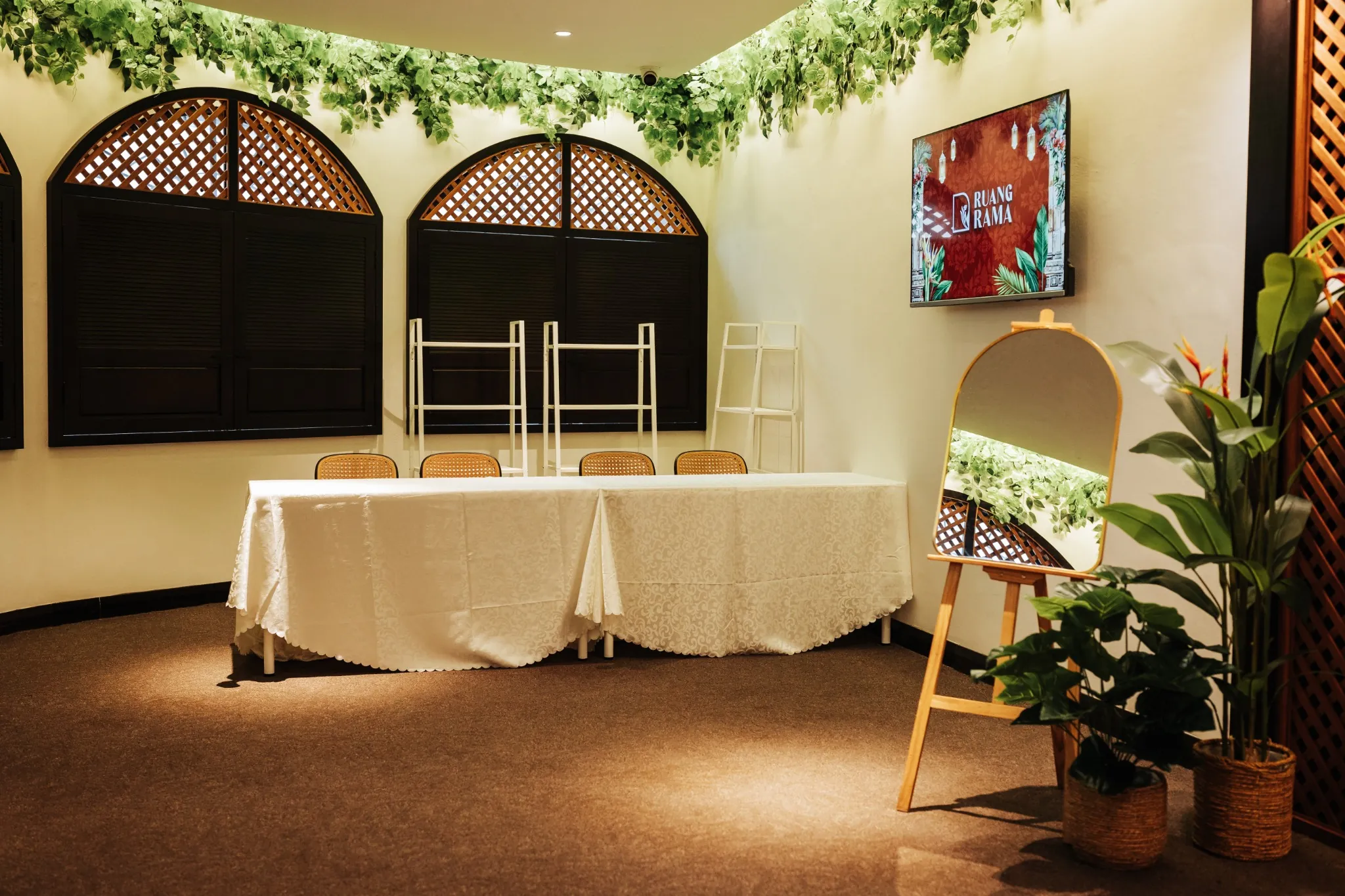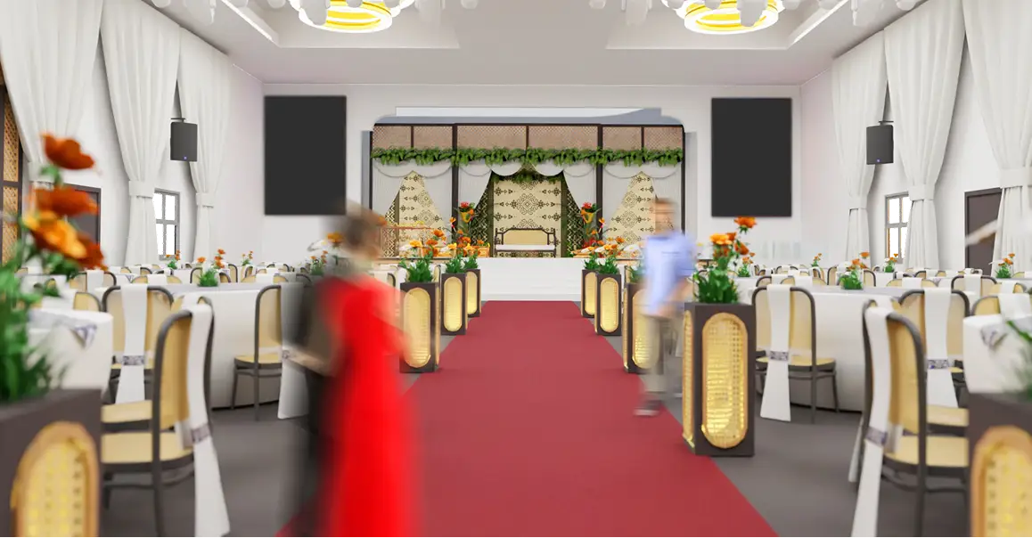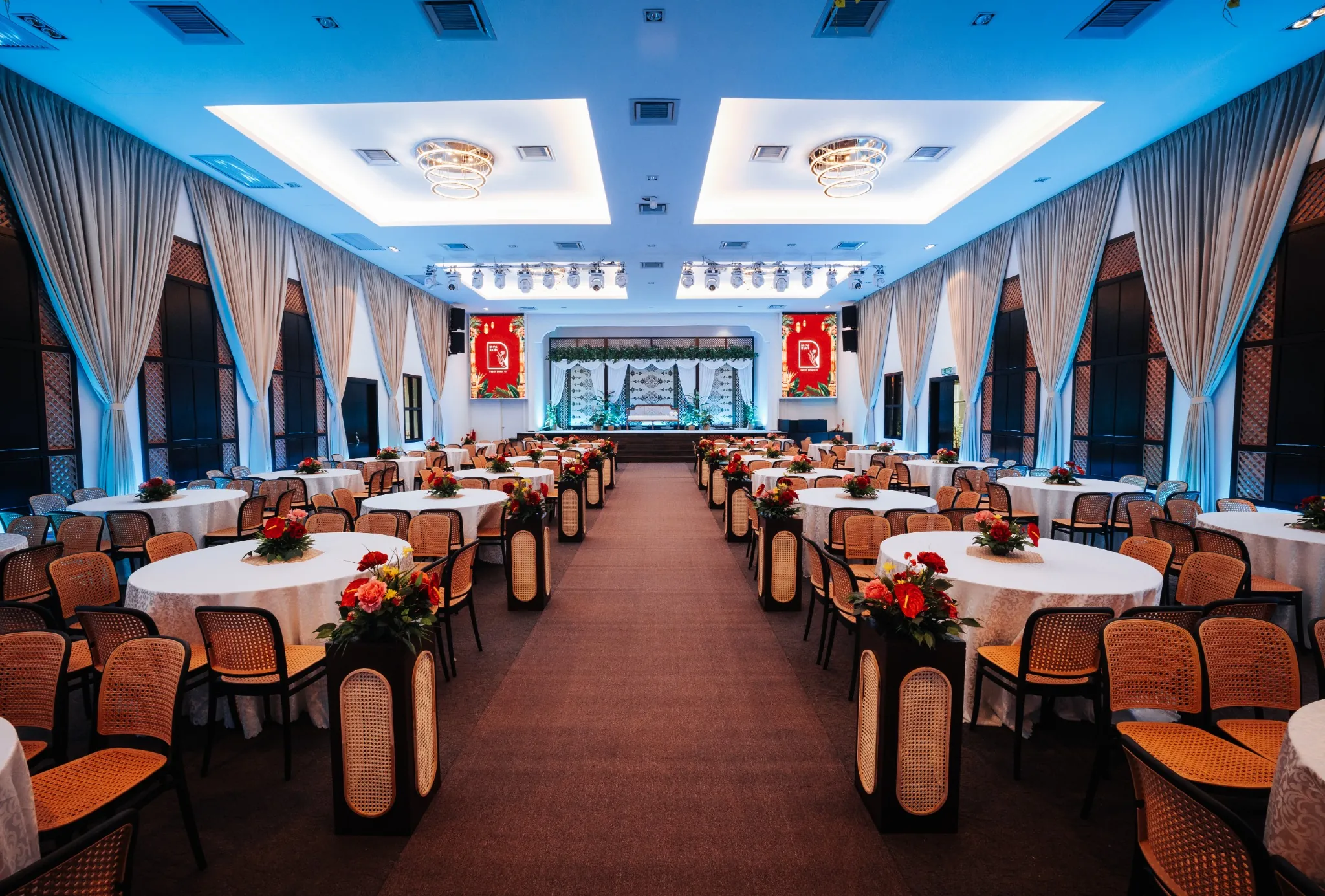 The Ruang Rama Hall comes fully equipped with all the essentials to make your event seamless—complete with tables and chairs, a state-of-the-art sound system, and a spacious stage, ensuring every detail is covered for the big day.